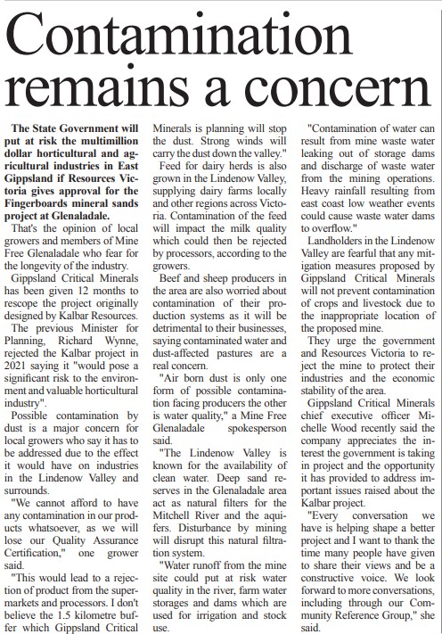 Kalbar’s desperate attempt to hide the threats to the vegetable industry were exposed during the EES process. Their ‘Horticulture Report’ was shown to be nothing more than an embarrassment – compounded by the fact that their ‘experts’ had not visited the area to talk to concerned growers and had no idea of what crops were planted when. Expert witness for MFG – Dr Robert Premier – made it very clear what was being put at risk. His presentation supported what opponents to the mine had been claiming. There is no way mineral sands mining can coincide with the type of vegetable farming that takes place on the Flats. It would appear that those who claim otherwise are either completely uninformed, deluded or so self-interested they couldn’t care less what happens to our most important industry. No amount of ‘spin’ will take the risks away.